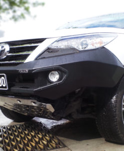 The Evolution Bumper is finished in a hard-wearing flat black Powder coat or can be colour coded as an option. All our parts are now zinc plated before powder coating to ensure a long rust free life. They are a 3mm and 6mm steel construction and includes as standard a 5mm Aluminum bash plate not offered on other brands. The middle winch plate insert comes standard in Black or can be optioned as stainless steel or colour coded with the rest of the bar. We also offer as standard, LED fog lights which are an extra on many other brands.